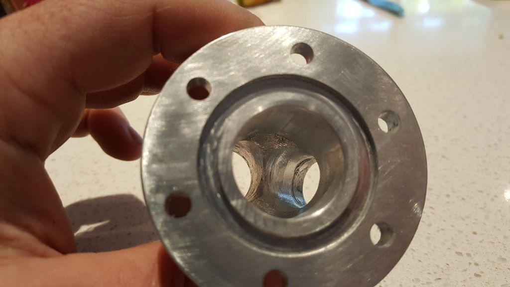A bit of porting with a drill and carbide bit. I really need to get a die grinder! I even added the 'o' ring channel from the Davies Craig flanges.