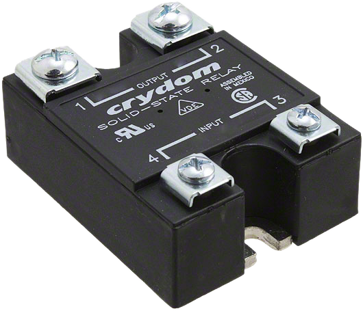 At high loads, in fact, solid-state relays tend to produce considerably more heat than their mechanical counterparts. This is because, like all semiconductors, they have a relatively high on resistance. The unit I pictured above has an on resistance of 0.039Ω, meaning that at 20A, it will cause a voltage drop of 0.8v, and generate a massive 15 watts of heat. (for such applications, the relay is required to have a heat-sink attached.)