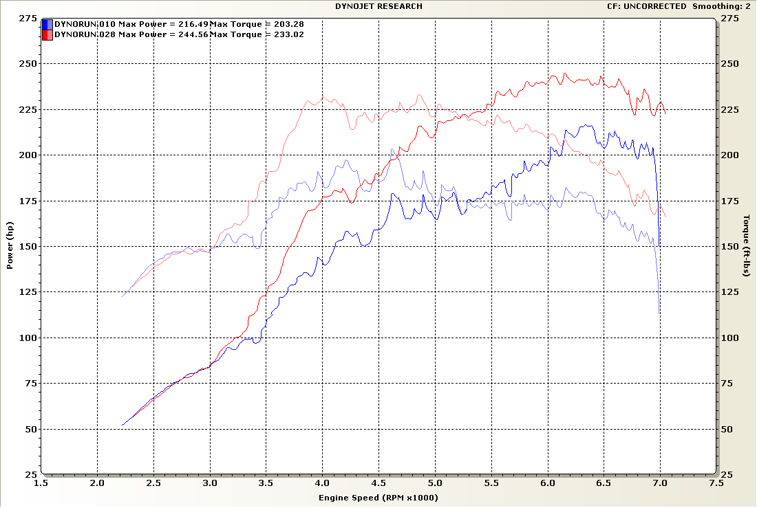 FWIW, this was my car at 12 psi using the FM default Hydra map (blue) vs the after-tuning results (red) when it was a stock '99 1.8 and a 2560 about 8 or 9 years ago: