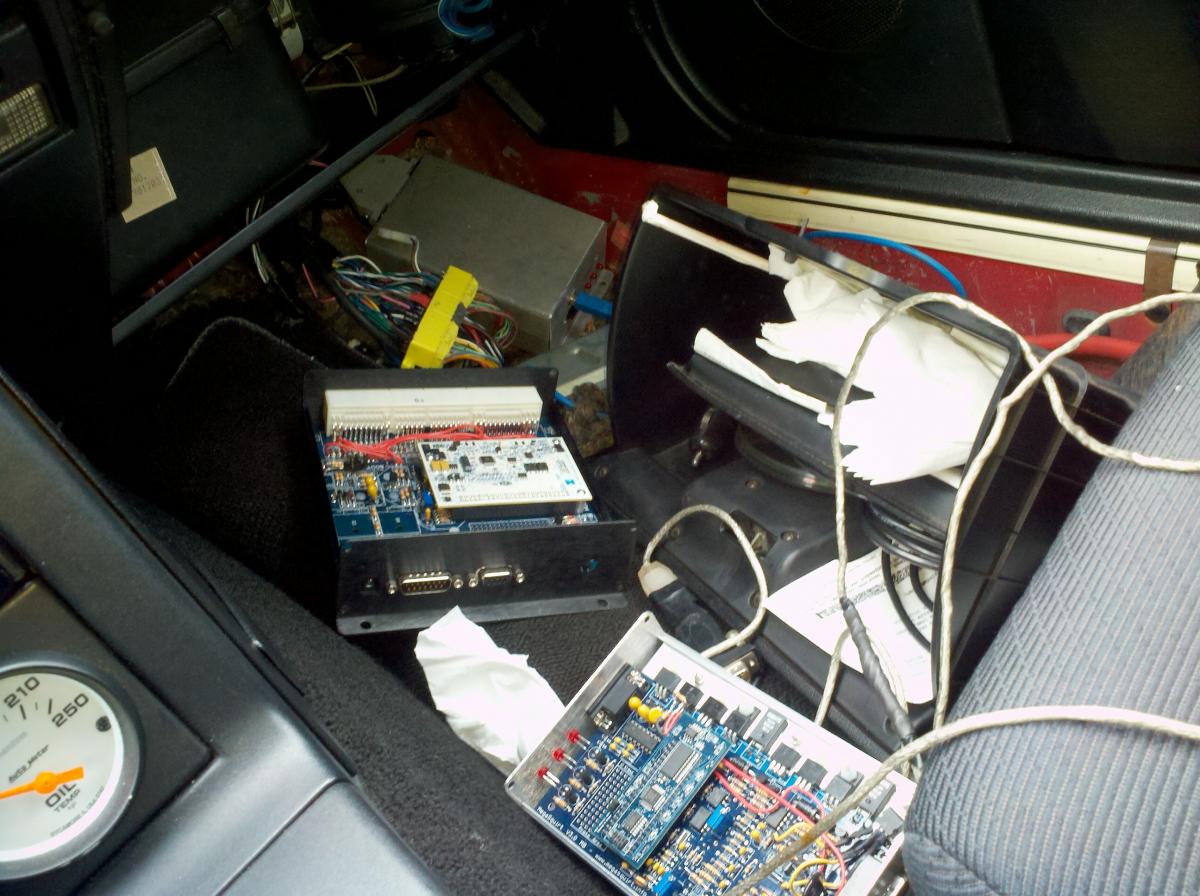 I think narrowed it down to something on my 16 pin connector. I'm sharing power and grounds to my LC-1, WB gauge, and oil temp gauge through it. That's the plug that creates all the noise in my speakers...problem is my spare injector and spark output on are in so I cant idle with it unplugged, so I need to start pulling things off it one by one and see what's causing the noise at least.