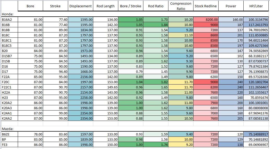 I started putting this together a while back but never got around to adding much more than Honda and a couple Mazdas.