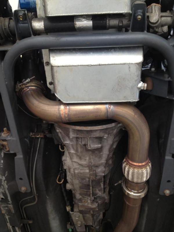These swaps are doing a double-90 under the rear of the oil pan, ahead of the flywheel, to the driver's side. Hard to get 3" pipe to work down the PPF side. I may try and tackle it with oval tube at some point.