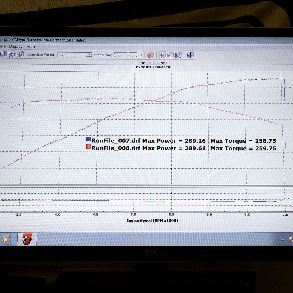 V8Roadsters just finished up dyno tuning on their car. 99* F ambient, 60%RH on a dynojet so these are conservative numbers. On a cooler day they would be in the 290's.