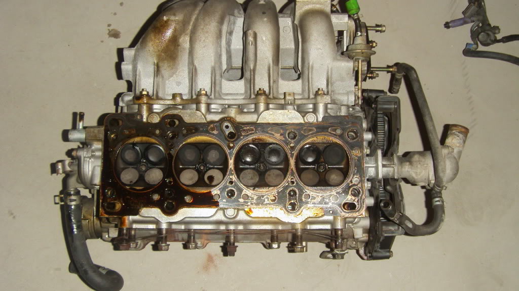 Yeah, what sav said. Mine had piston contact on the valves (like everyone said it wouldn't). It is either time for oversized valves, or a new head. I chose VVT. I did manage to sell my HLA's and exhintake cam to offset the cost of the steal I got on a "needs some work" vvt head.