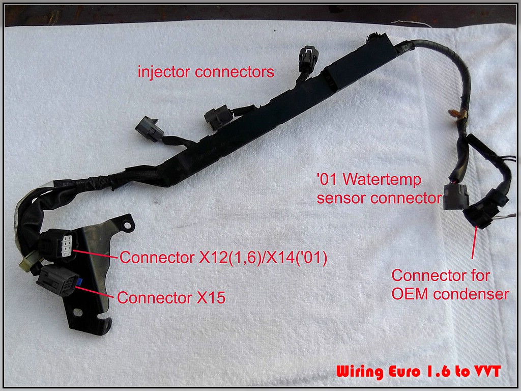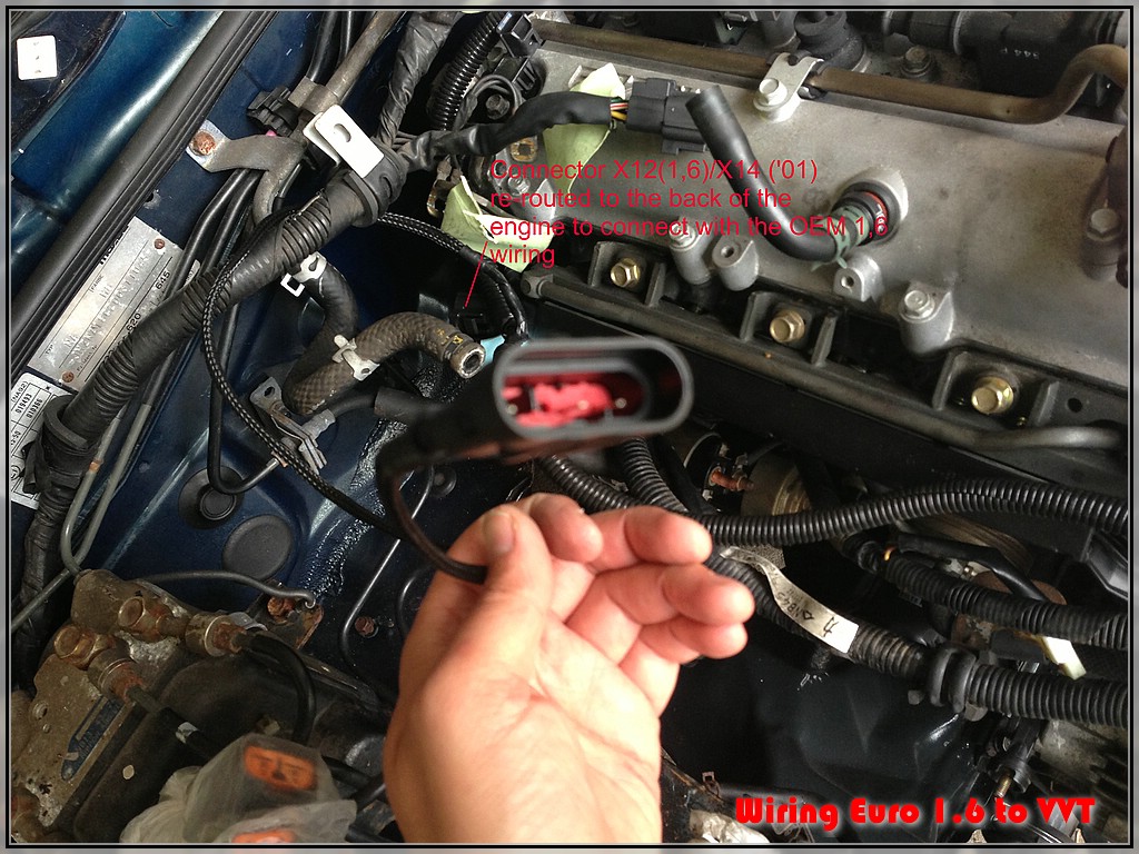 I had to re-route the connector X14 of the '01 harness to the back of the head to meet the connector X12 of the 1,6 wiring - but the connectors are physically the same...