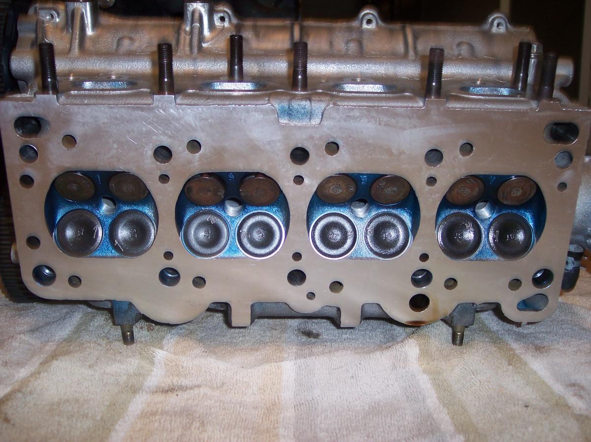 2) The blue layout dye in the combustion chamber, means to me, That an old school stone valve seat grinder was used, They are ok at best.