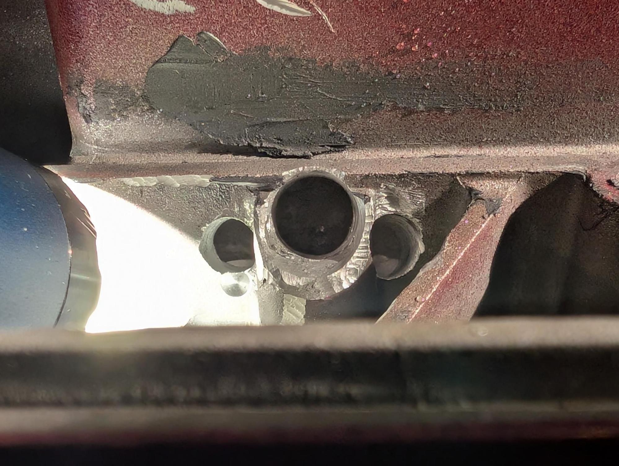 hey everyone. it's me, yet another "too much oil in the catch can" guy who stumbled upon this thread. ever since installing the TDR C30-94P kit on the car, i haven't been using the PCV hole (capped the PCV). i can barely make it 40 miles staying OUT of boost before that thing starts overflowing and dripping onto my headers. so in a fit of being sick of it, i took whatever i *remember* reading from this thread and made some holes. (edit: i'm also planning on reusing the PCV side to route another hose to the can after reading all these posts).