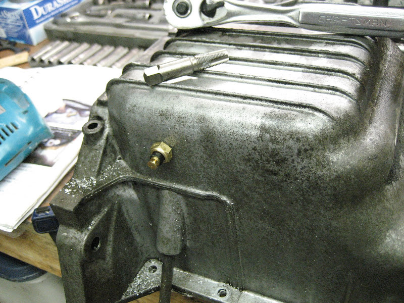 I have been throwing around the idea of where to mount my temp sensor and I actually have that same spot marked on the oil pan but havn't had the ***** to drill it yet. Is there anything that interferes in that area once the engine is installed? I was debating on moving it to the other side of the engine to get away from the turbo side which is getting rather crowded with other crap.
