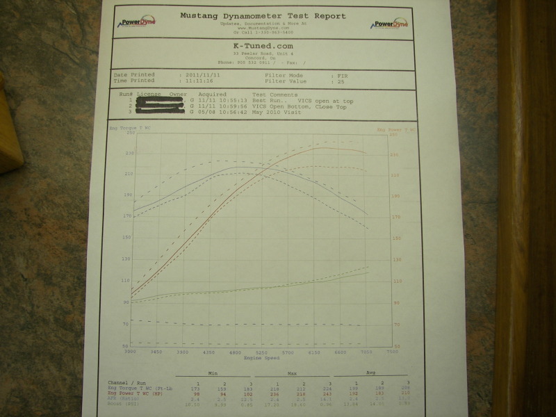 The engine is down on power, and would not put down consistant numbers from run to run. Looking at the MS datalog, I could see that the SC belt was slipping, however, engine output would vary irrespective of boost. It was rather dissappointing. The dyno runs were very quick, with a pull from 2000 to 7000rpm taking only 3.5 seconds, which is odd to me. Normally it's about a ~10 second run up that I am used to seeing, but I'm sure the engine is down on power based on street performance.