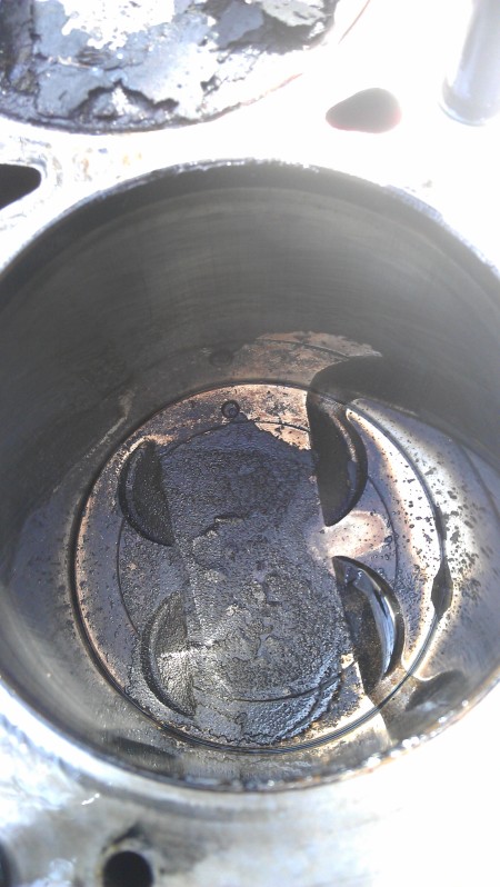 OR the slight bend put lateral torque on the piston, and it slanted in the cylinder, knocking off the cylinder walls... BUT, you said theres no wall damage.