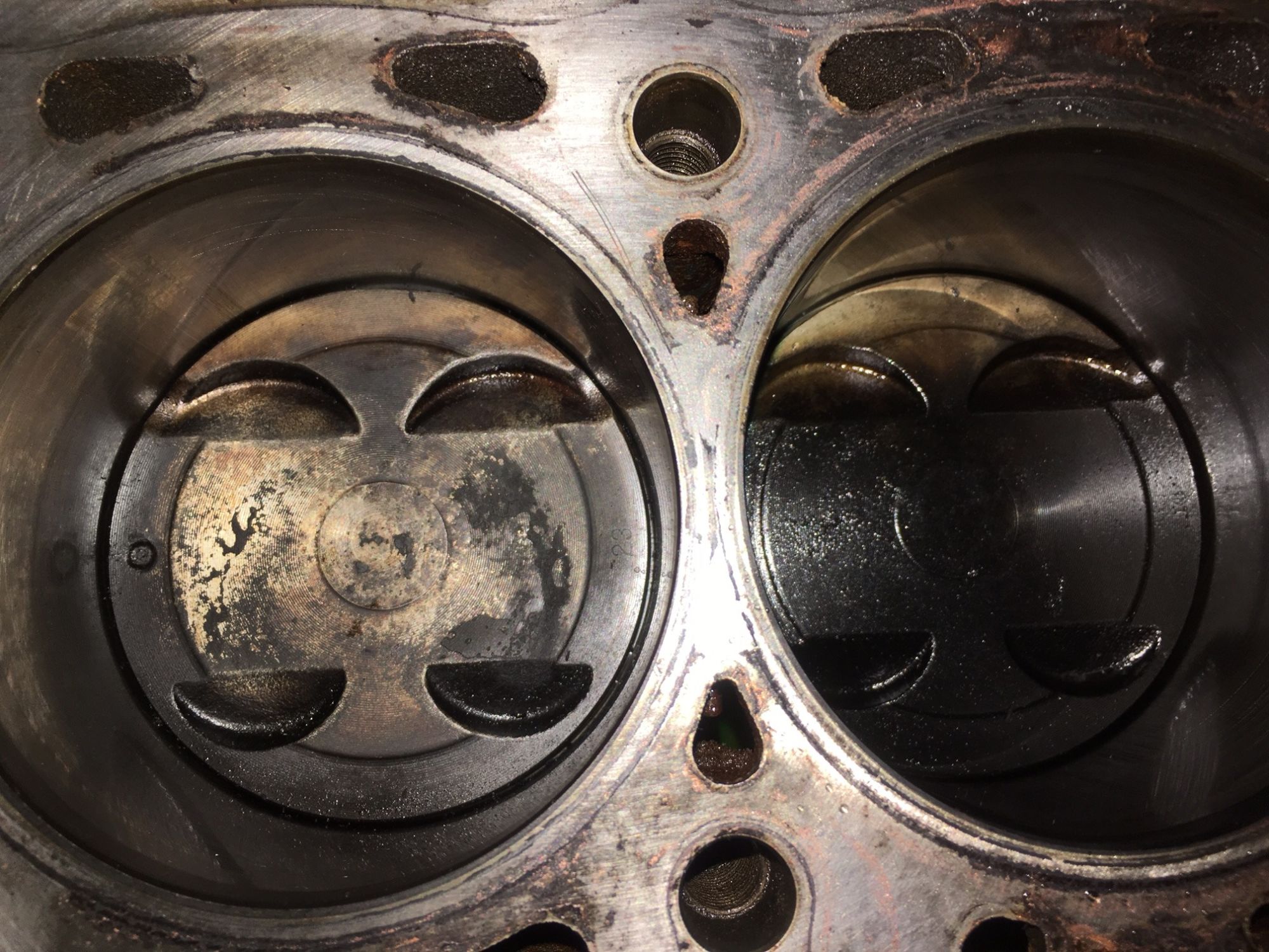 We need pics of more than one piston. All four please, and pictures of the cylinder bores of all 4 as well. Pictures of all four cylinder head combustion chambers. We can't diagnose your sickness, with a picture of 1/8th of your turd. We aren't Dr's god dammmit.