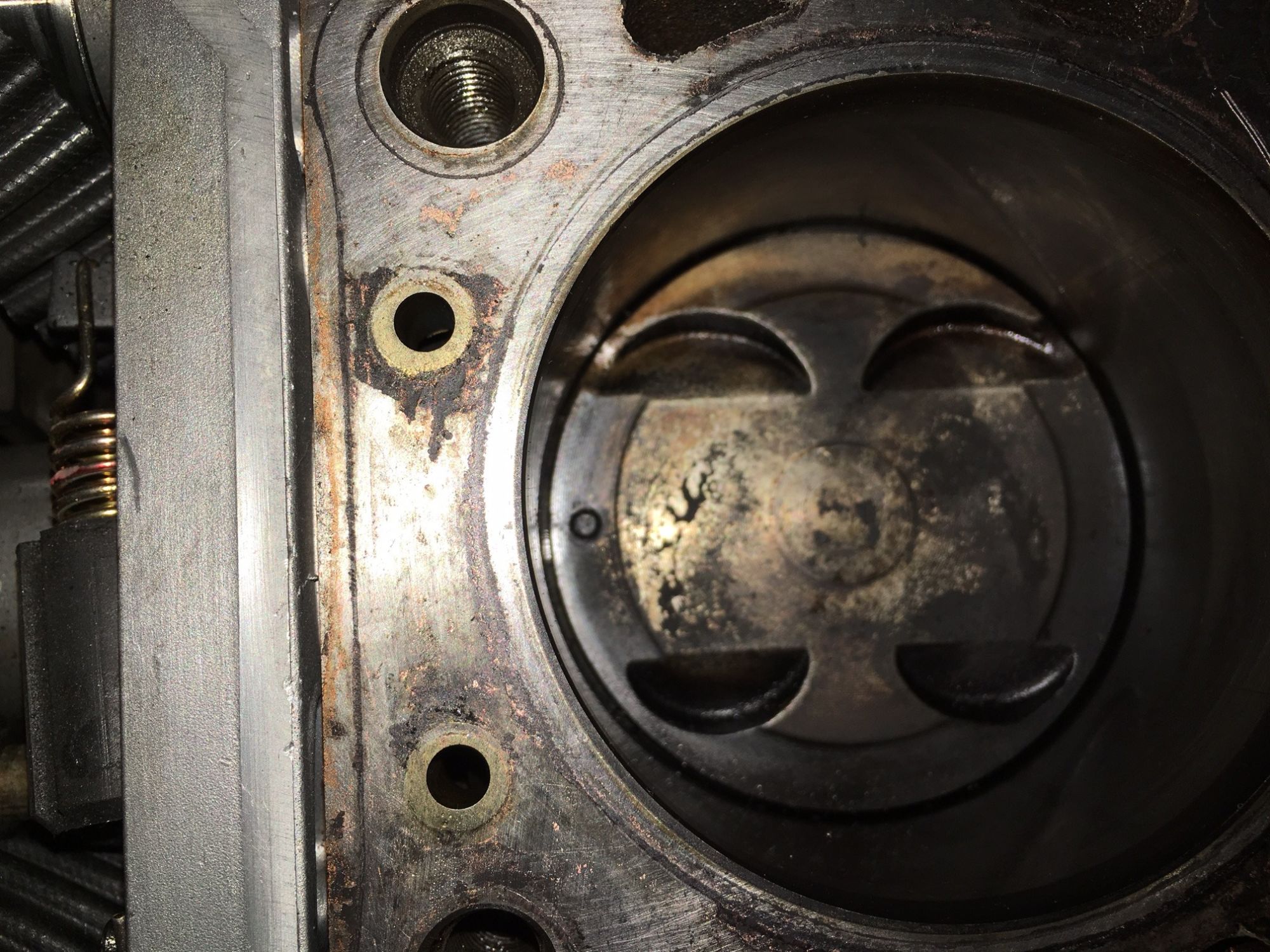 Okie doke. The head has been removed. I am at a total loss. I have no idea what the issue is. The piston looks fine to me, granted I have never checked anything like this out before. Anyway. Here are pictars. I tried to get the best I could of the gaps between the sidewalls and pistons. I honestly suspect that the head is screwed. Like it got warped or something.