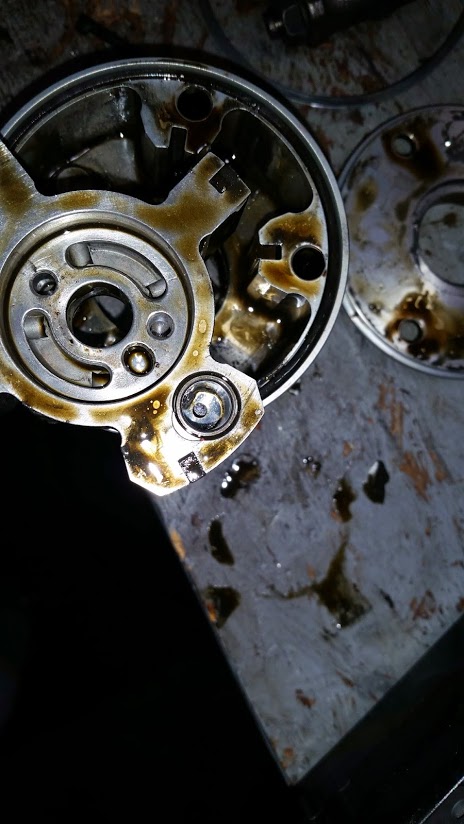Inside the VVT. note the powdered metal in the actuator.