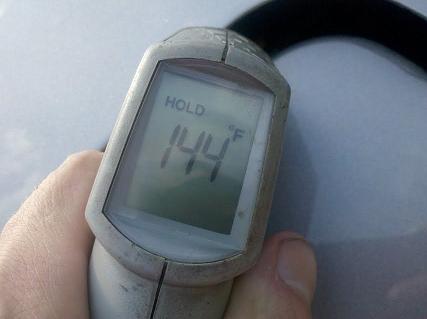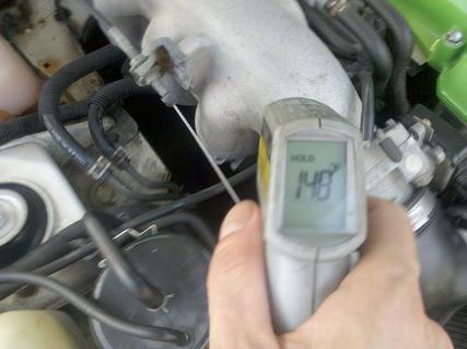 (Heat soak was measured by popping the hood free of the "catch" and leaving it closed. I aimed the digital thermometer into the engine bay. Not scientific I'm sure, but gives you an idea of underhood temps)