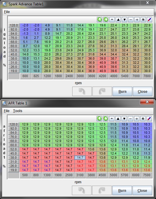 After perusing some old threads, I found this representation of stock AFR targets and timing map: