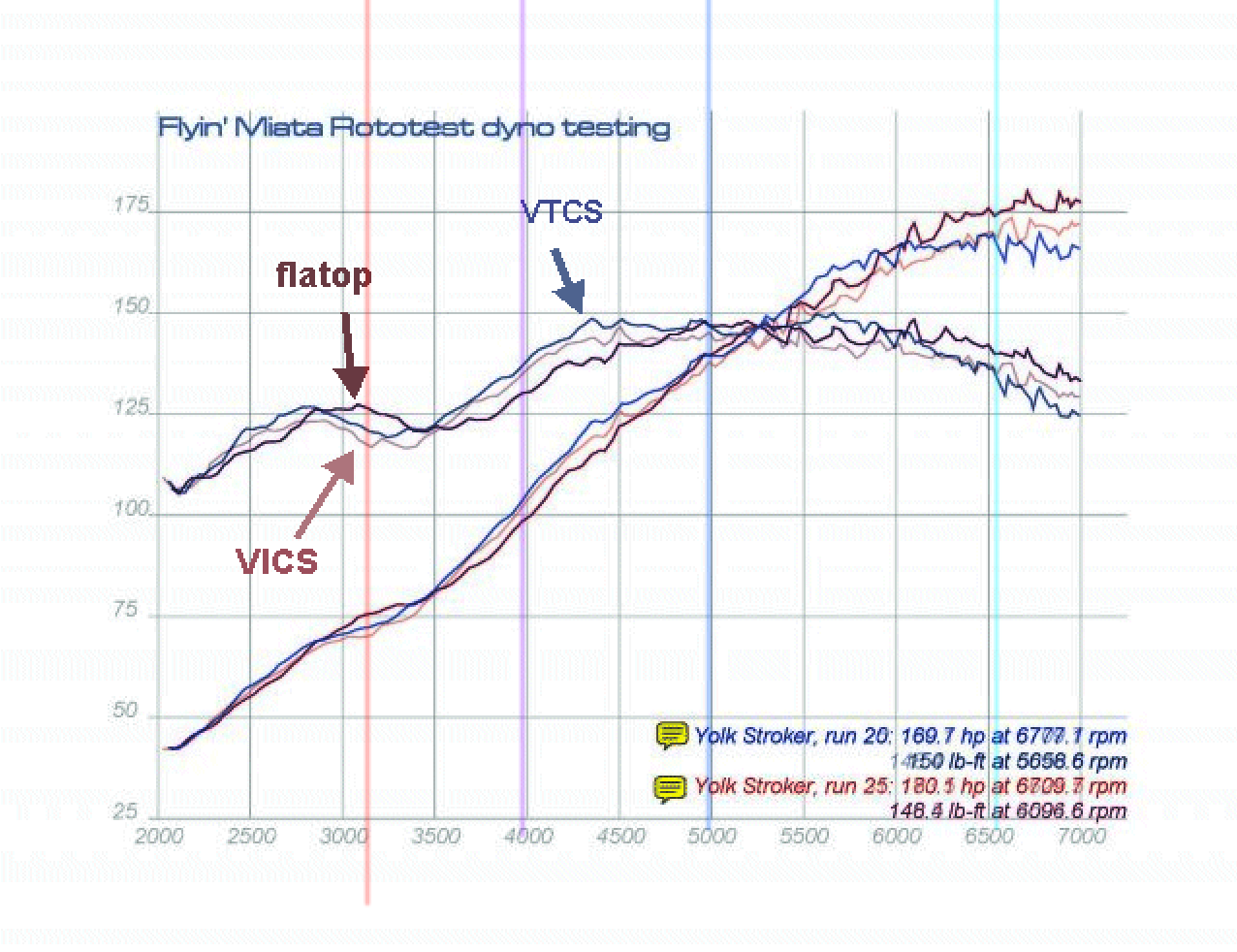 I think Emilio said Taxi was running around 9 - 9.5" runners(trumpets to head)... which should give peaks at 4000, 5000, 6750 which is pretty close to the actual dyno results, at least the bottom two anyway.