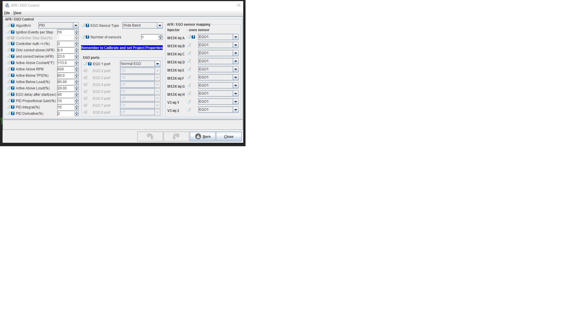 Here's a screenshot of the AFR/EGO Control pulldown.