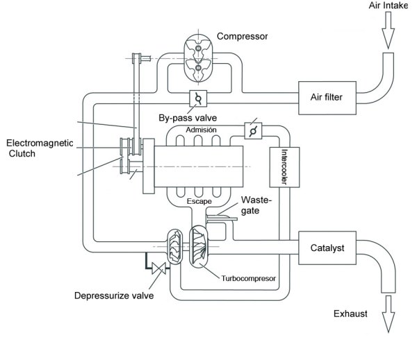 - The sc14 has an electromagnetic clutch on the supercharger drive pulley. that can be disengaged once the turbocharger is making adequate boost.