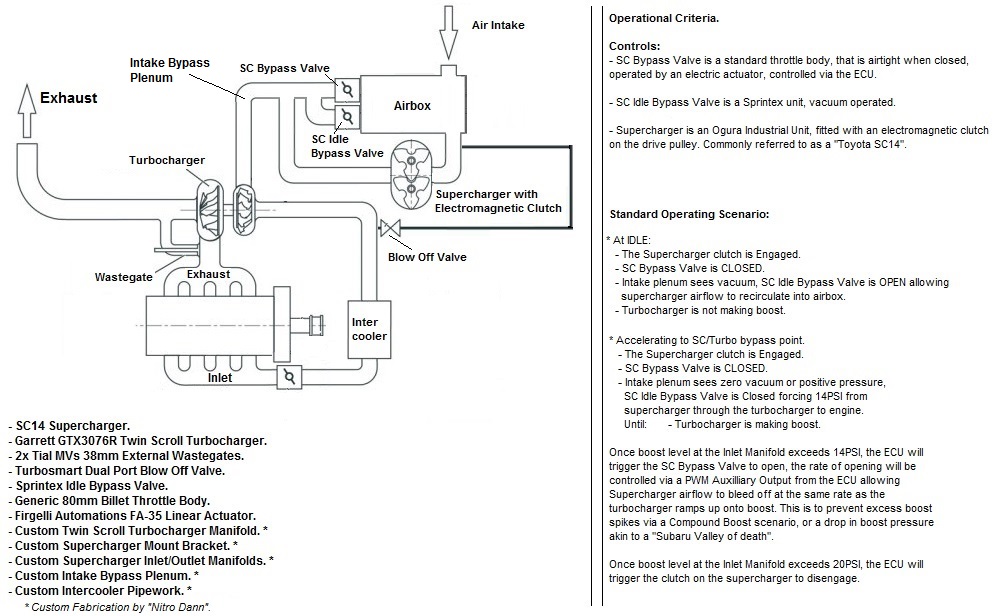 As for the electronics required, I know of 1 very successful Australian built twincharged vehicle that uses only vacuum actuators for the bypass activation. Not everything needs to be overly complicated to achieve reasonable results.