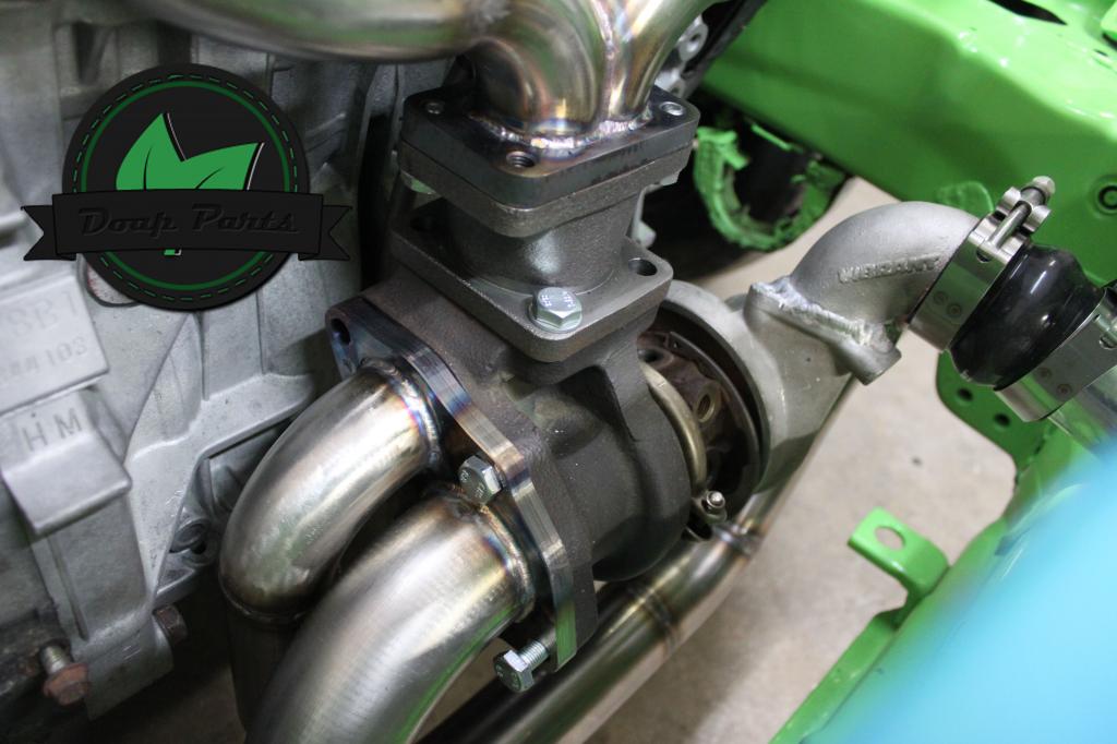 DoapFab manifold to downpipe. with BOV welded to the endtank.