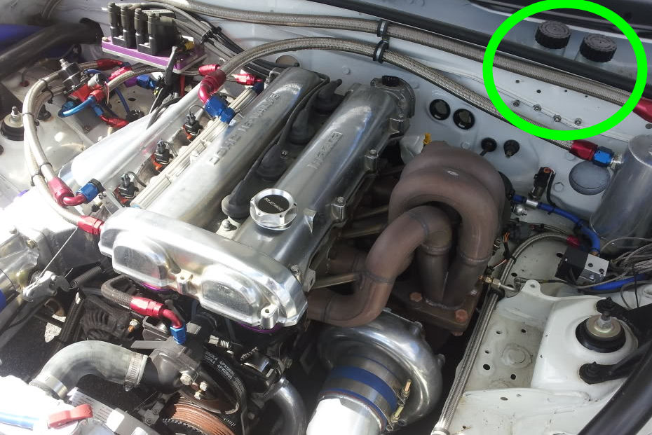I cut the original fuel rail mounts off and made these two brackets to allow me to use the smaller but cheaper WRX 420cc injectors. Got a full set for £20 rather than £100 for RX8 yellows and the brackets were just scrap aluminium. I'm still using the plastic isolators too.