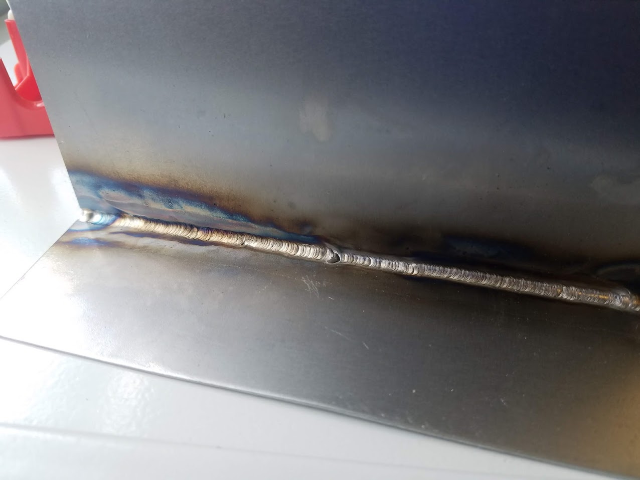 This pales in comparison to everything else I see on here, but I'm proud of it. I'm learning to weld on my lunch breaks at work and after a month of lunches I did this! It is 16ga sheet, cold-rolled steel, TIG welded with stainless filler.