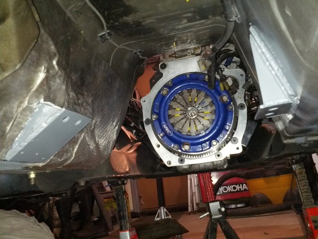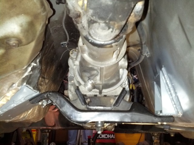 Now, after welding tranny mounts to the tunnel, everything fits as though it was meant to be that way: