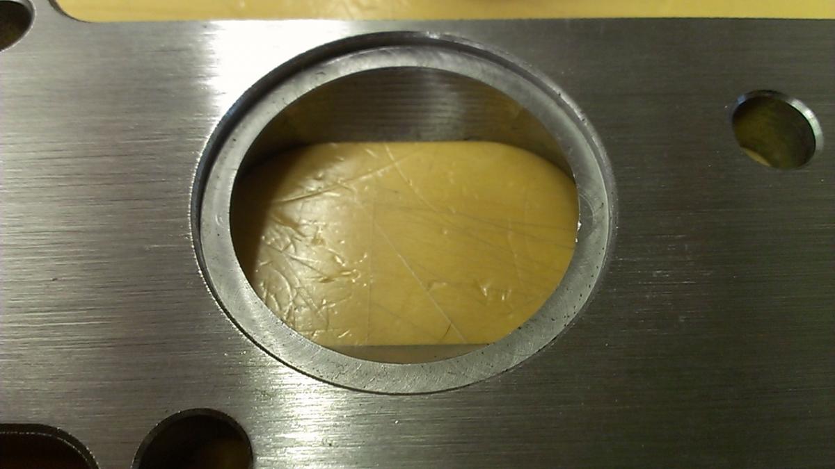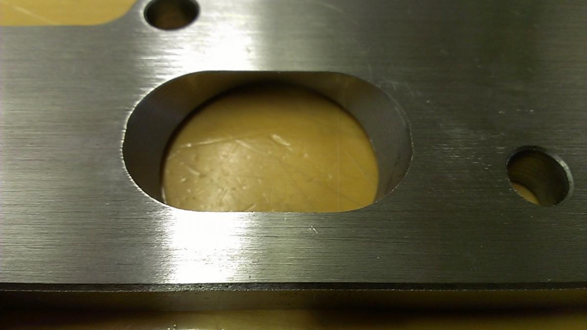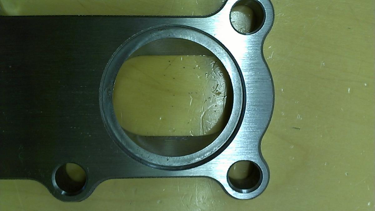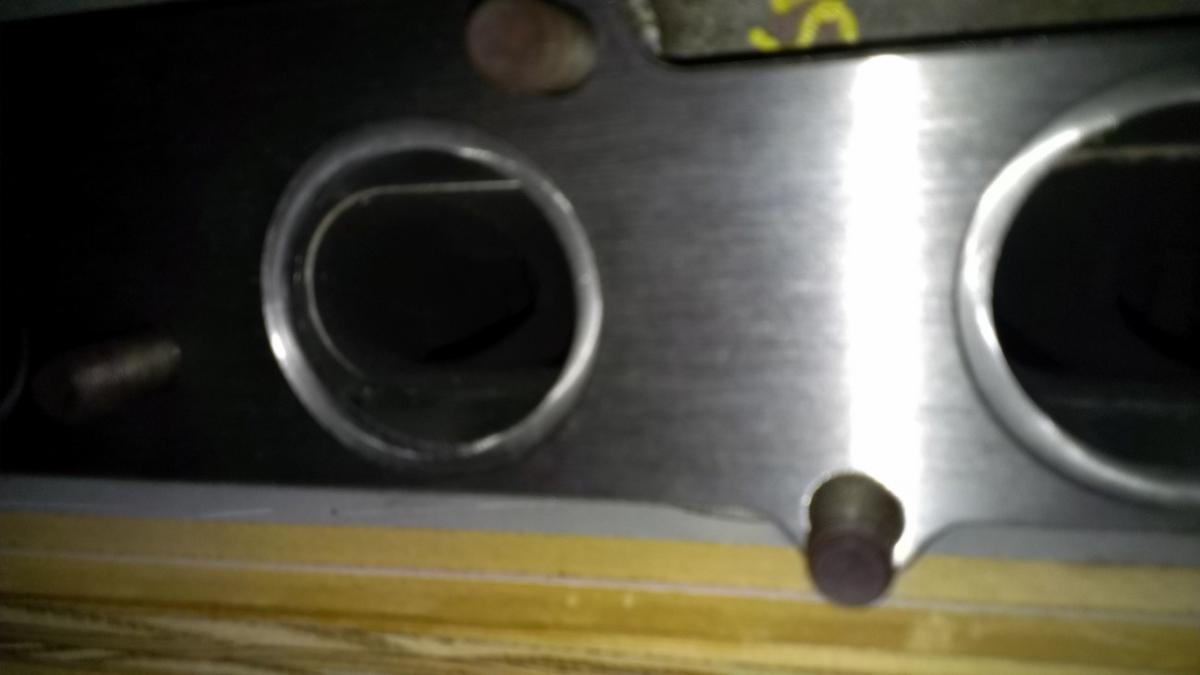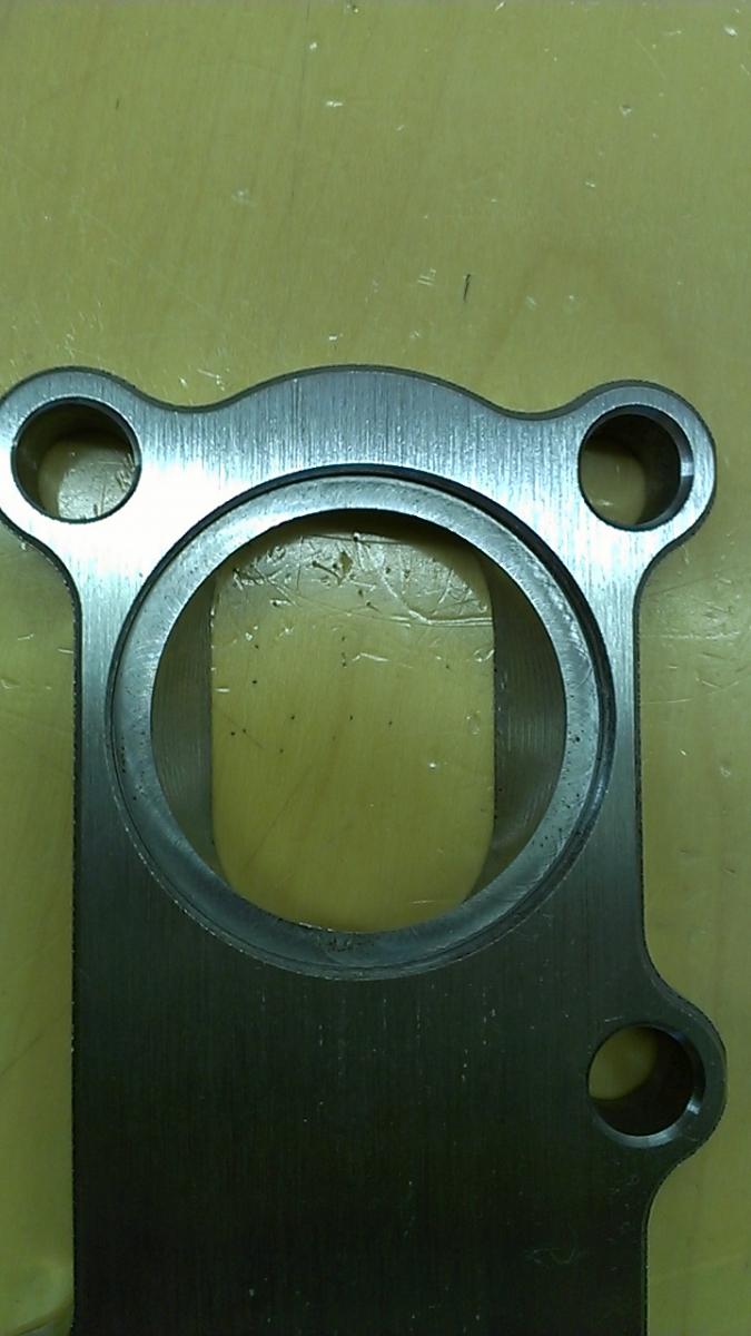 I apologize in advance for the horrendous pictures, but the lighting in my garage is miserable. I started by sticking the flange on the untouched BP6D head in my garage last night and everything lines up perfectly. Ports look good, all the holes are in the right places, absolutely no complaints. I did notice that the ports on the flange are slightly oversize compared to an OEM gasket.
