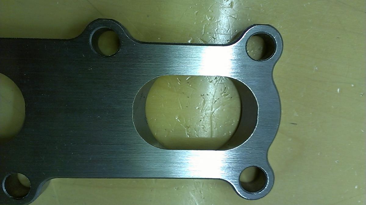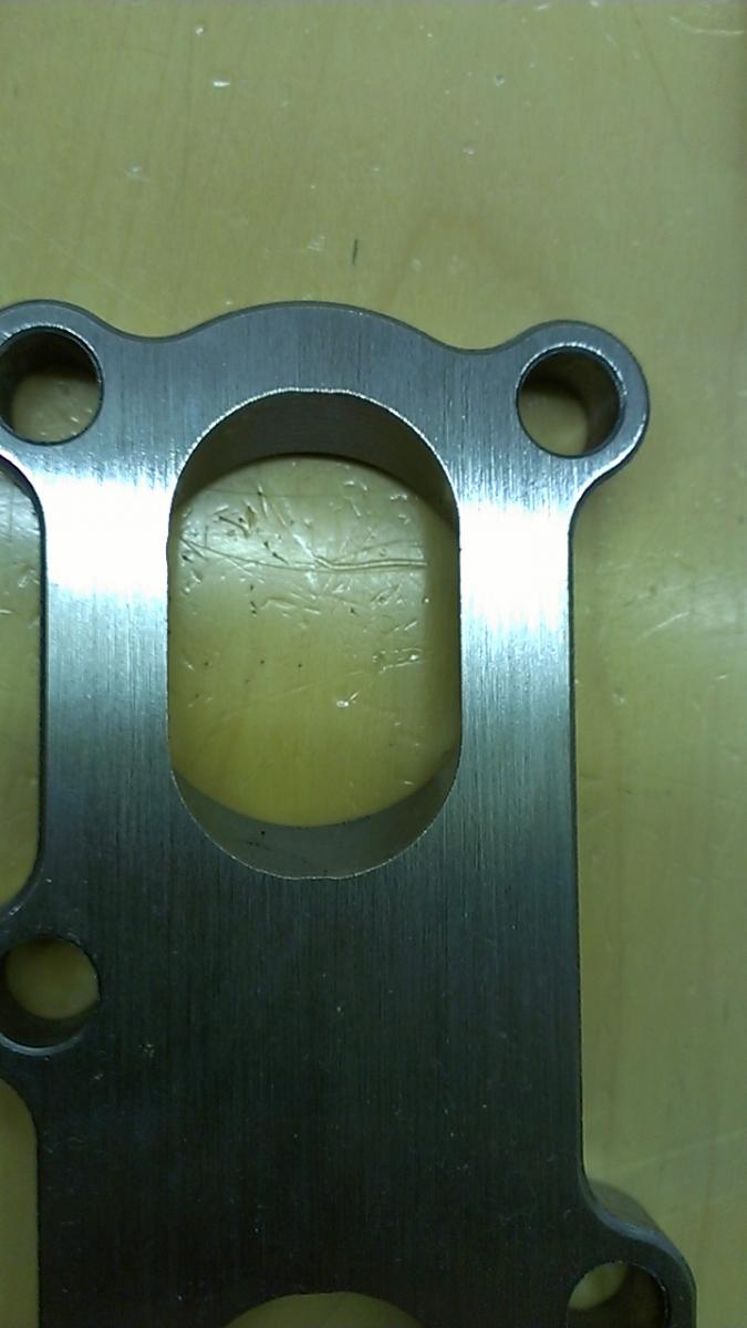 Its mild and just a hair under 1/2" thick. I'll hit it with a caliper when I get home but I suspect they probably sanded it smooth. I want to get some pictures with an OEM exhaust manifold gasket tonight and see how close this is. Everything on these flanges is great, these guys really went the extra mile to break all the sharp edges on all the corners and radii. Everything has a nice 45° break on it. The port edges are razor sharp, but I expected that and suspect I'll have to abuse them with the die grinder after welding anyway.
