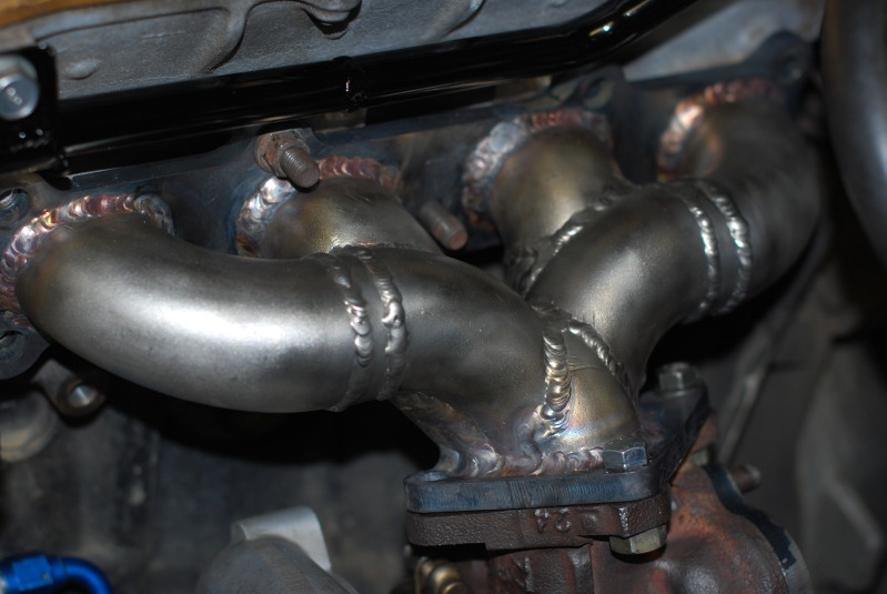 That looks great man, very nice. Same as my 1st manifold, but pointing down instead of up. Same design though. Your downpipe path will be MUCH better than mine though, of course.