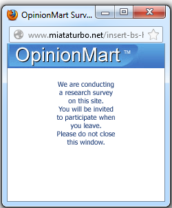 I just got one for Ace Hardware. From this site. Now, I understand that this site is a business, and depends upon advertising revenue to exist. But this type of advertisement should not be presented to paying subscribers. It's incredibly annoying and intrusive. I have yet to ever fill one out. I'd rather not disallow popups for miataturbo.net.