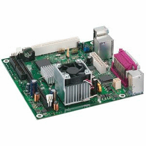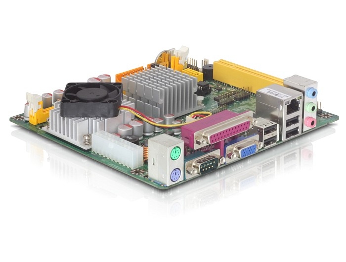 And the board itself, showing the processor (with heatsink and fan) in the foreground: