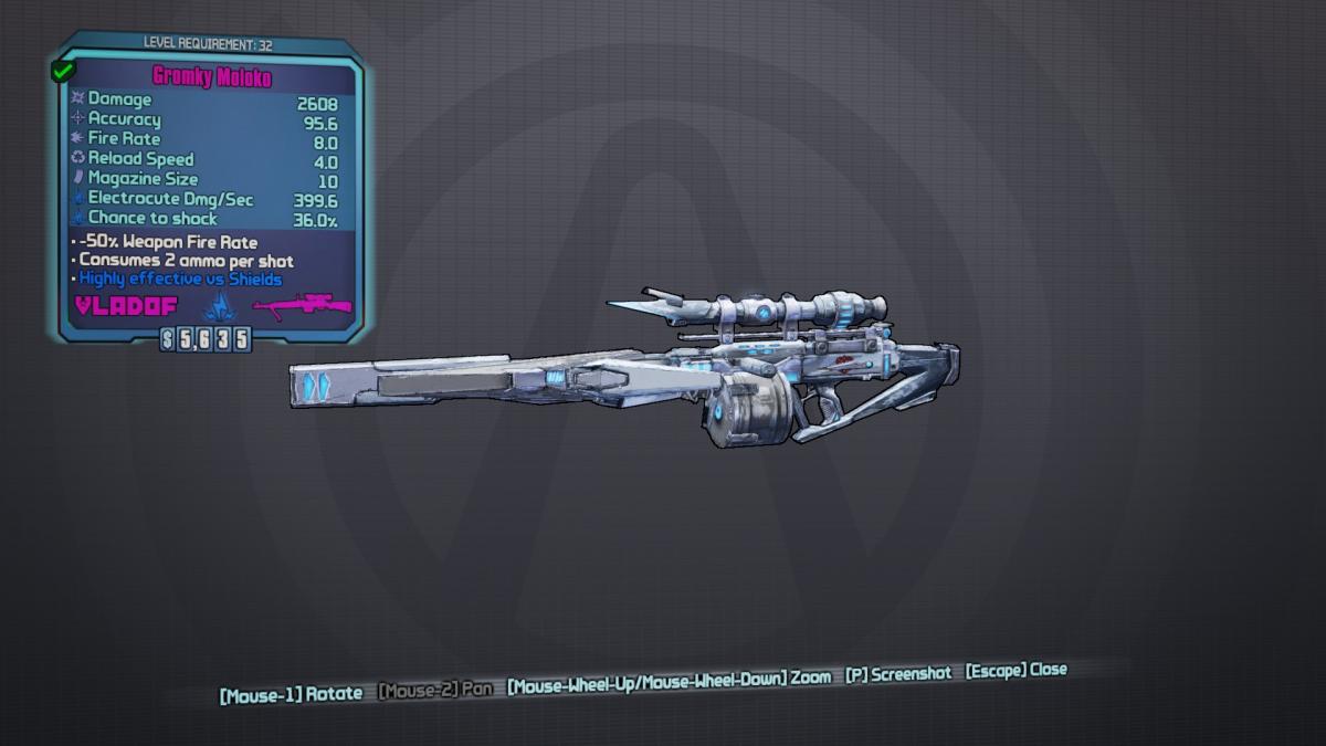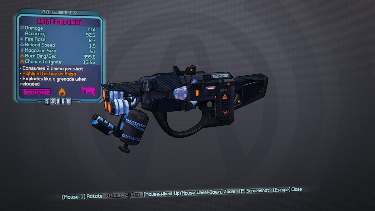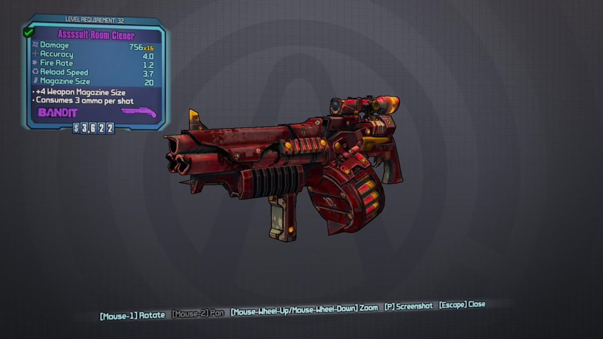 What, no rocket launcher? Mine does 50,000 damage. And I gunzerk with another one that does 45,000. And I have a 21.5% launcher damage artifact thingy. That's 115,000 with one pull of the triggers.