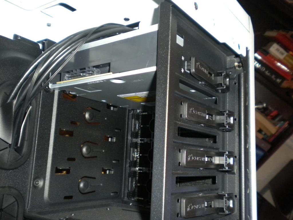 Also, I have a fan issue. I noticed a "tick" on my test boot. Turns out it was coming from one of the two fans on the front of the case. The lower fan is rubbing on something. So, for now, I just disconnected it; I still have another fan right above it, a gigantic fan on the side of the case and the exhaust fan on the back. This case also has an integrated fan controller on the front panel. Now, I'm not sure if I need to worry about not having one of the front fans, if I should just compensate by setting the fan controller the mid-speed. Thoughts on that would be great.
