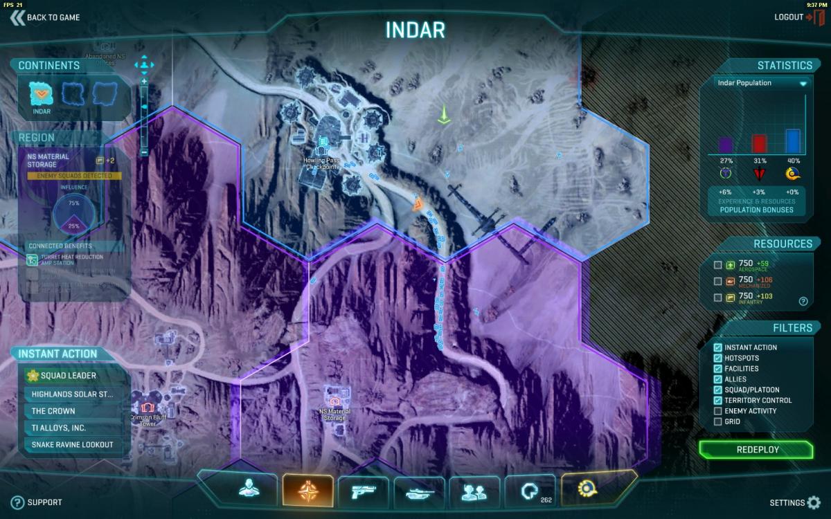 There is also major talk of a 4th continent, more of a "marsh" "swamp" type place. Seems kinda strange to me as there is no water in the game. There is also the problem where people cram into Indar, leaving the other two locations kinda dry. Which i kinda like, easy points are nice, but big points are acquired in the big fights.