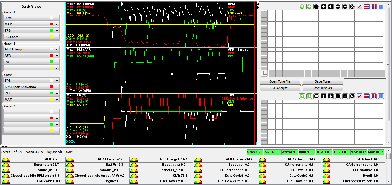 EDIT: also while cranking my "RPM not synced" goes away and "cranking" goes green but flickers along with other things like WUE.