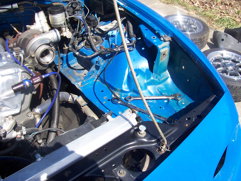 I cant test fit it yet. I had a hell of a time opening the box with one hand, I'm not about to try and carry it outside...lol. I'll wait till this weekend for my bro to give me a hand.I'm hoping the flat black just cleans up the engine bay. That it wont look so shitty I guess. I'm also swapping to all black hoses. I cant decide on either a crinkle red valve cover or a flat goldish valve cover. Whichever one it will be powder coated, not painted. And I plan on cutting it to expose the cam gears and get a set of HKS ones. I'm trying to bring a little color and cleanliness to the engine bay.