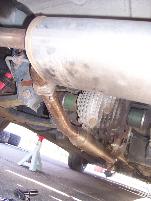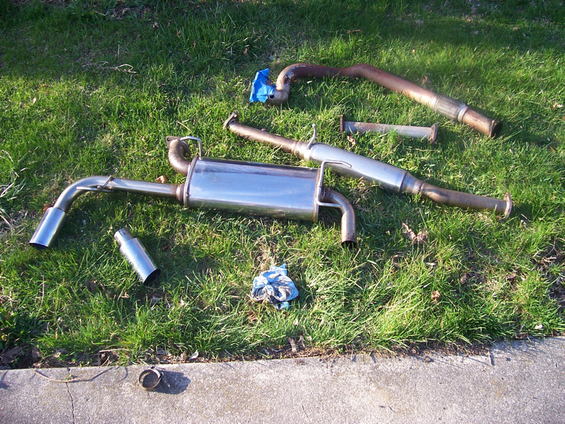 I cant believe I was able to get from the downpipe all the way to the exhaust tips out from under the car. I was using my right hand to do the wrench work and my feet to hold the exhaust. Got everything out in about 30 mins! I think I do better with one hand than two....lol.