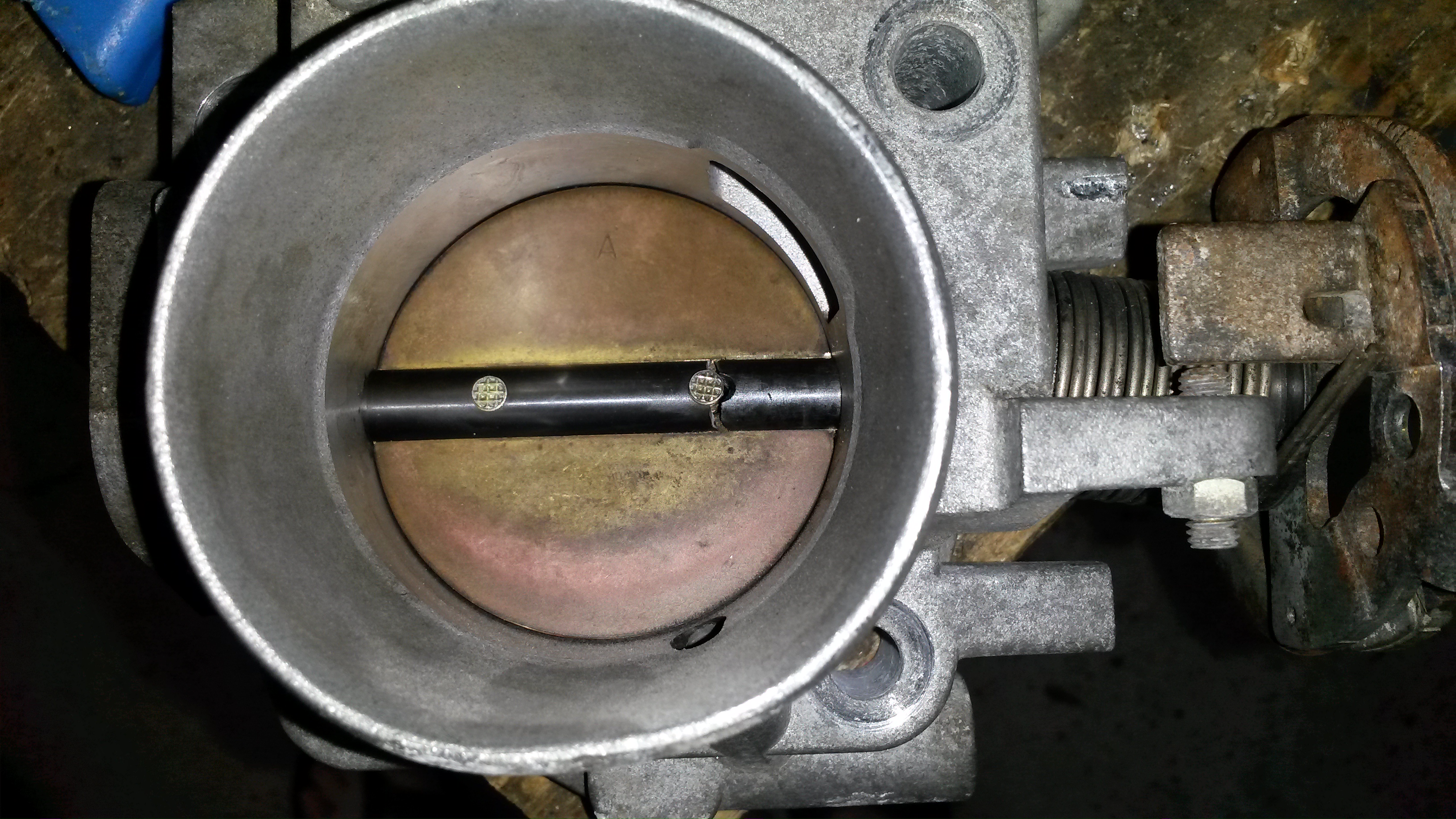 It's is amazing that screw didn't go into the engine. Basically where it broke, the throttle shaft is wrapped about 55% around the screw and that was JUST enough to keep it holding on. Somehow. Second pic shows this well.