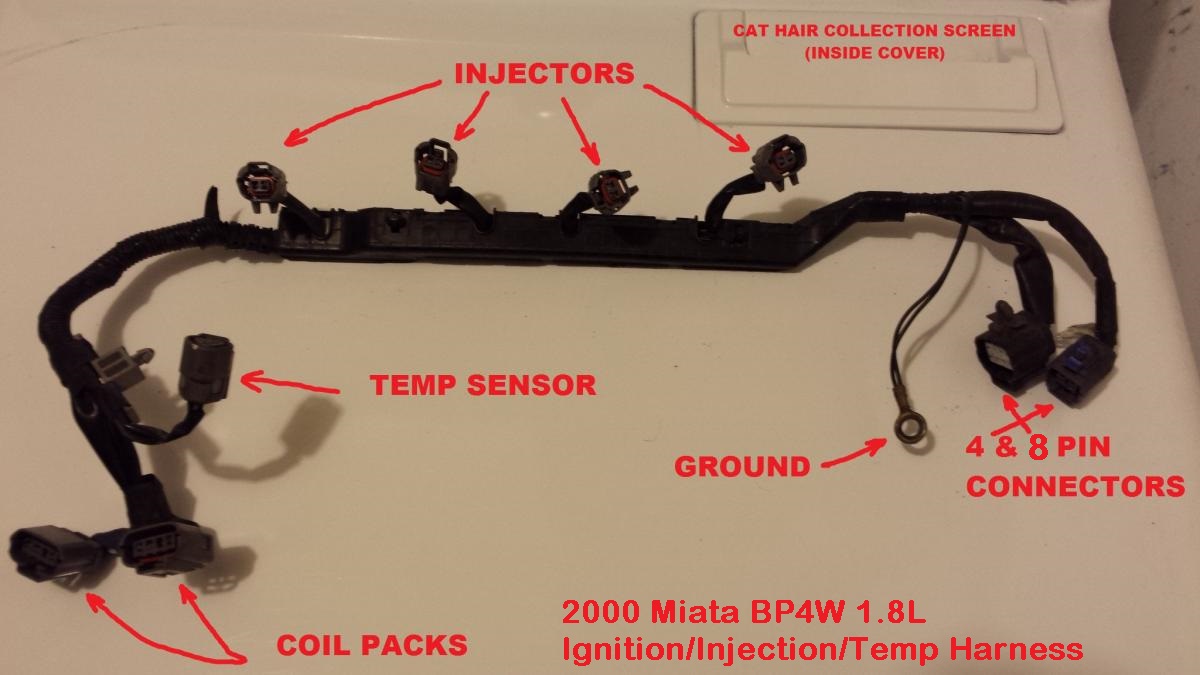 I had the wiring all pulled apart on my 2000 this weekend so its fresh in my mind... the coils, temp sensor and injectors are all connected to the same harness. This harness runs from the rear up to the front of the engine where it attaches to the chassis harness in a 4 pin and a 8 pin connector that are anchored to a metal plate in front of the timing cover. Follow me thus far? Underneath the throttle body there is a steel bracket that attaches to the lower manifold. There are 4 bolts in that bracket: 2 go vertical up under the throttle body somewhere and 2 go horizontally into the lower manifold. On ONE of these two horizontal bolts there is (or should be) a ring terminal with 2 wires attached to it. These are grounds and they are VERY important. These pass DIRECTLY back to the coils. I know this because I had to check continuity on this today.