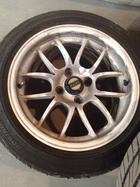 fine print - i got into an accident with these wheels and tires on the car. none are bent and all hold air. one of the tires has a bubble. you will probably want new tires anyway since only two of them are matched.