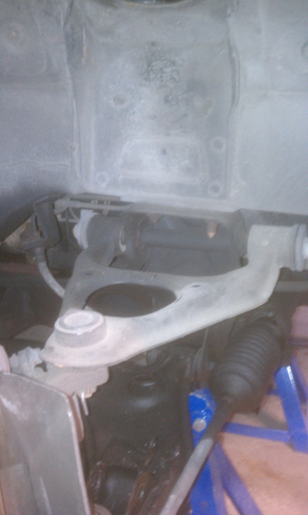 The Miata is up on jackstands and I got some work done on her today. I got stuck when I found that both of my front ball joints are bad, so I ordered new ones, hopefully they will be here before next weekend.
