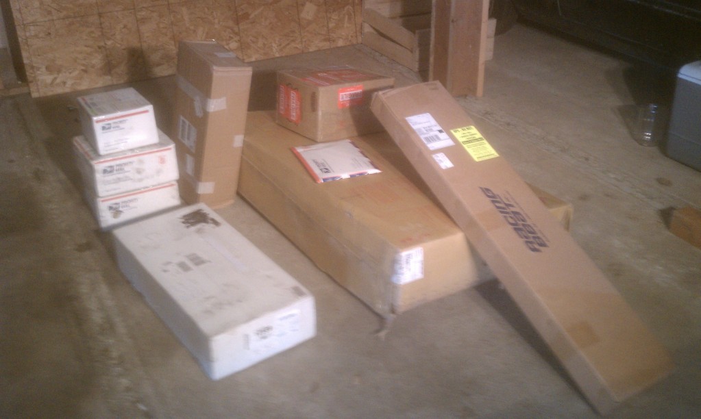 It's like christmas! My collection of parts that have yet to find their way on the car.