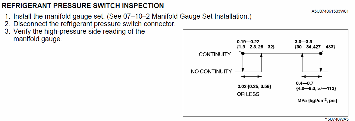 So clearly something is causing the low side pressure to increase, but the factory service manual isn't really clear on diagnosing it. You can test the switch itself but that doesn't mean it is the problem or if something else is causing the problem.