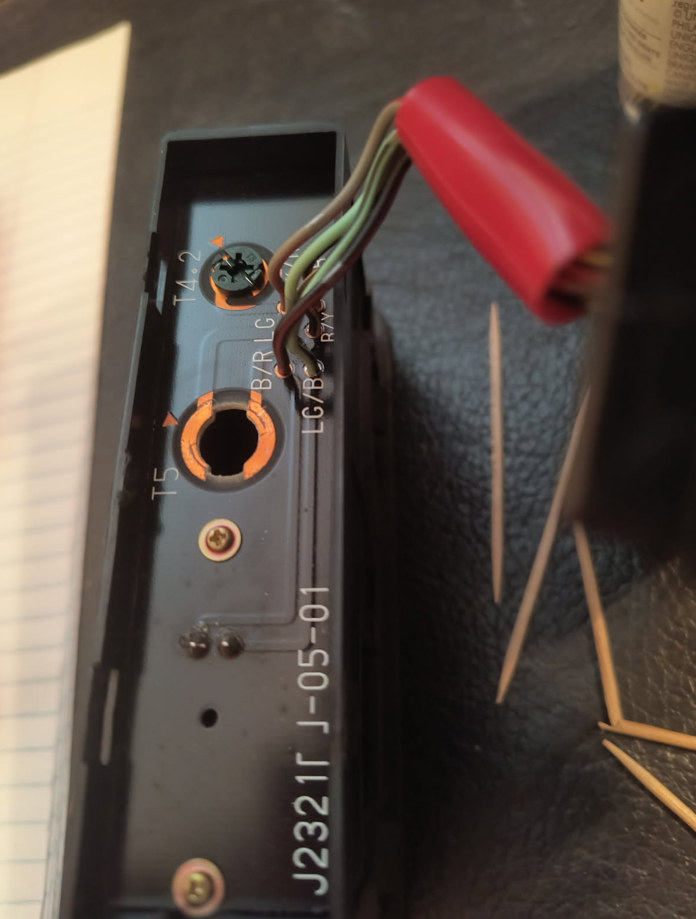 Here is the back of the airbag keyed module. Ignore the toothpicks, I use those to pry the housing apart without marring it: