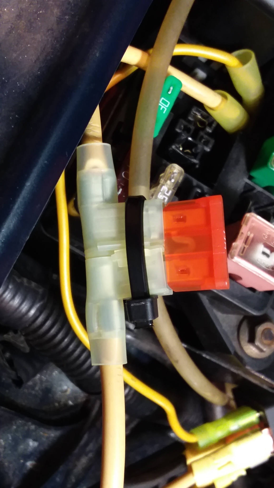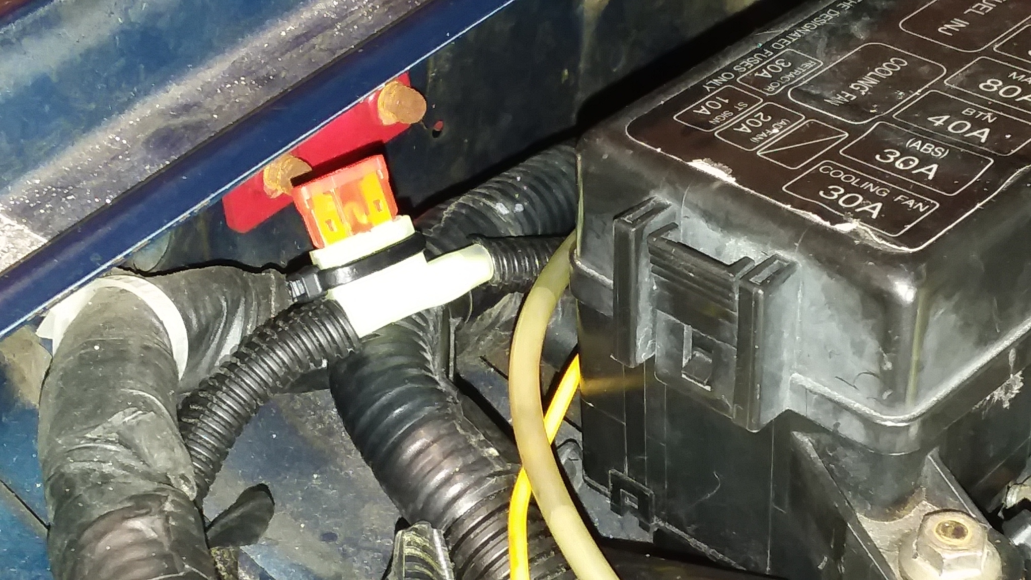 This is how the new wiring was done without a fuse holder. Thankfully it runs much cooler than the store bought holder.