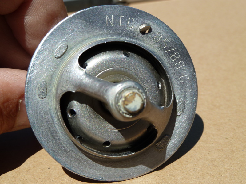 I pulled this out during my coolant reroute. Seems like a better design than most. Large opening (32mm) for more coolant flow. Haven't had any luck with Google, so I thought i'd throw it out there to you guys. You can see the stamped markings, but on the copper around the spring are the letters FBGZ.