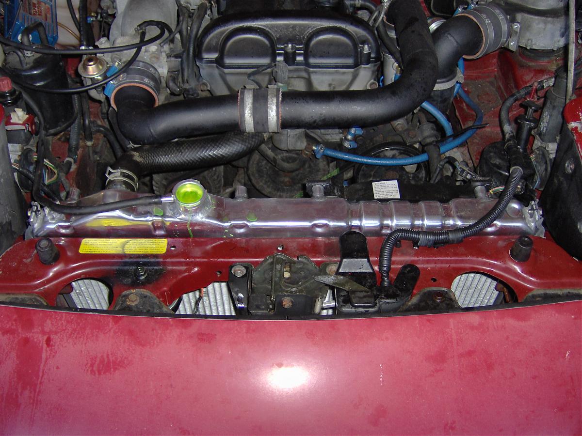 For ease of installation and fitment, esp if you have a large front swaybar, the 37mm will be good. I ran an older FM race radiator which was apparently a PWR 37mm, bonded core. With an MP62 and IC the car ran well within operating temps on track, even during 30-40 sessions in South Florida. However, I don't know how a turbo will affect cooling capability since it is going to add some heat into the system that the SC did not. I had to replace the leaking FM rad, and needed one quickly, so I got the thick CSF radiator. The OEM fans are going to need massive trimming to fit between the new radiator and RB hollow front bar. I'm probably just going to mount the 2 12" fans I have directly to the core using brackets based off the standoffs on the radiator.