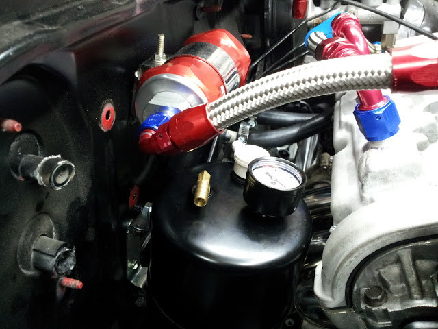 "T" off the vacuum rails, another "T" prior to the reservoir w/ check valve for booster going to FPR. Talked it over with Ludwig, and the MAP is onboard the Haltech, and will only be used for barometric correction, so no line needed to be run.