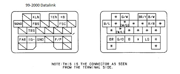 This is a 99-00 DLC pinout, but the positions of GND and TBS are the same on my car.